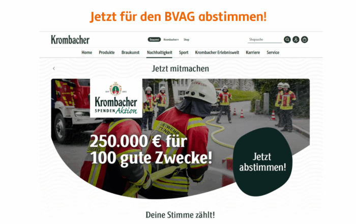 Unterstützt den BVAG bei der Krombacher Spendenaktion „250.000 Euro für 100 gute Zwecke“