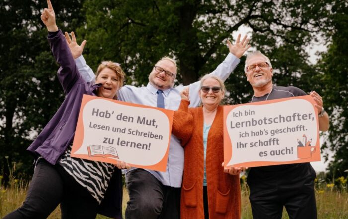 Wir schulen und vernetzen ehrenamtliche Lernbotschafterinnen und Lernbotschafter, die anderen Erwachsenen Mut zum Lernen machen.